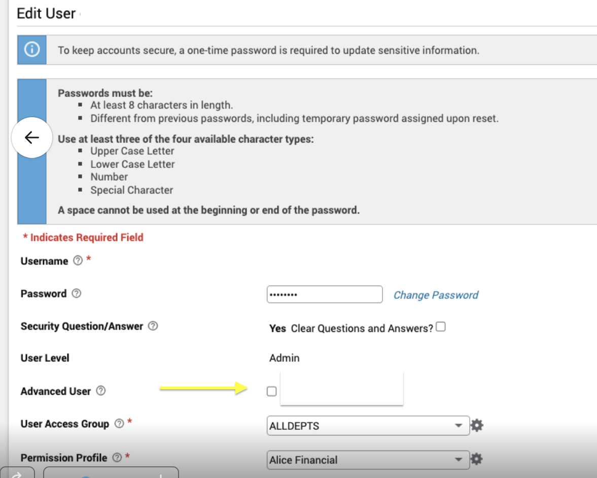 Update Alice's User permissions in Paycom