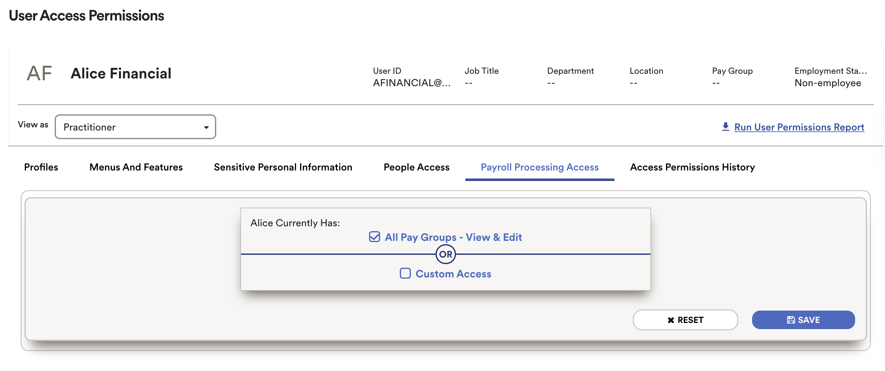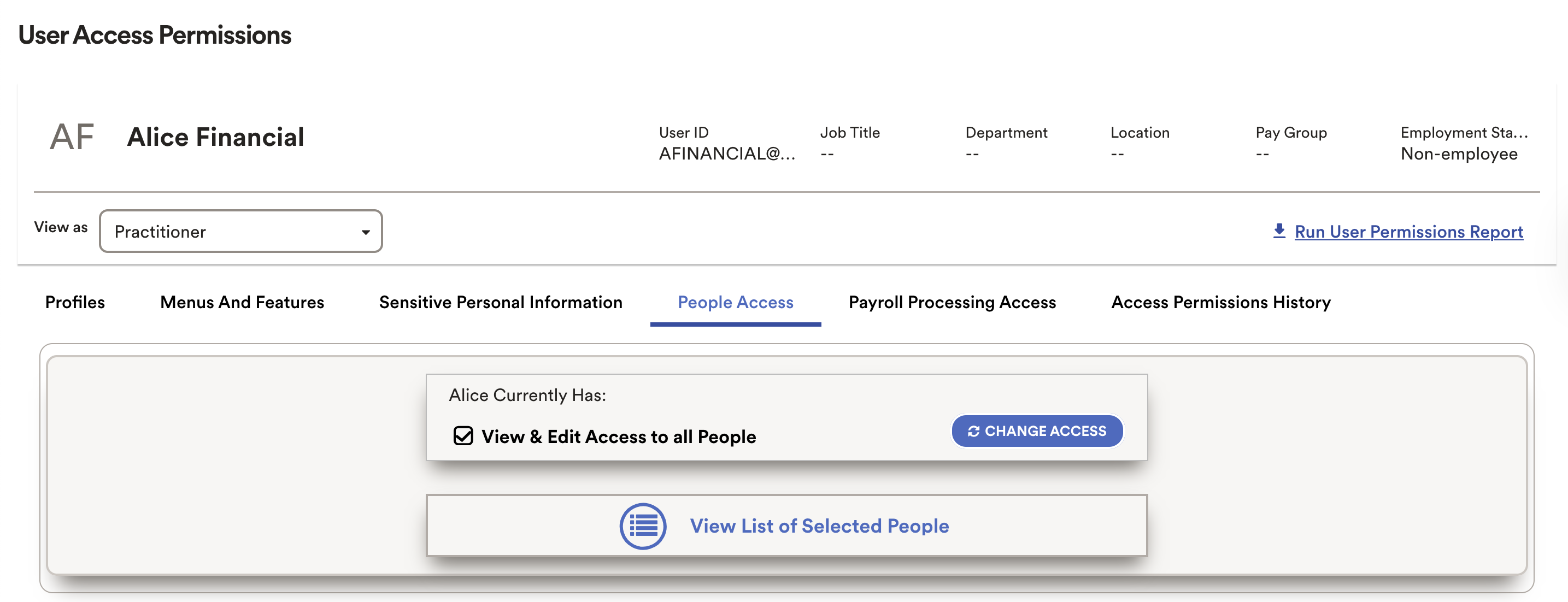 Below, you'll grant non-employee access to Alice in ADP Workforce Now for all of your paygroups.